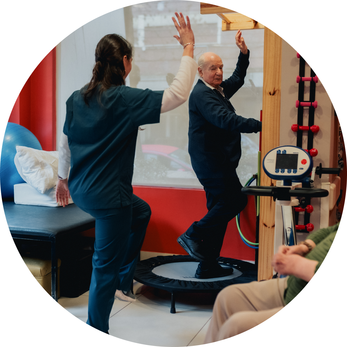 Coordinado por nuestra Directora Médica, y con el diagnóstico de nuestra médica fisiatra, el equipo interdisciplinario de profesionales y asistentes implementan los planes de trabajo para cada persona mayor teniendo en cuenta sus necesidades y capacidades, fijando junto a ellos las metas a alcanzar, trabajando en pos de la recuperación y mantenimiento de sus funciones.
